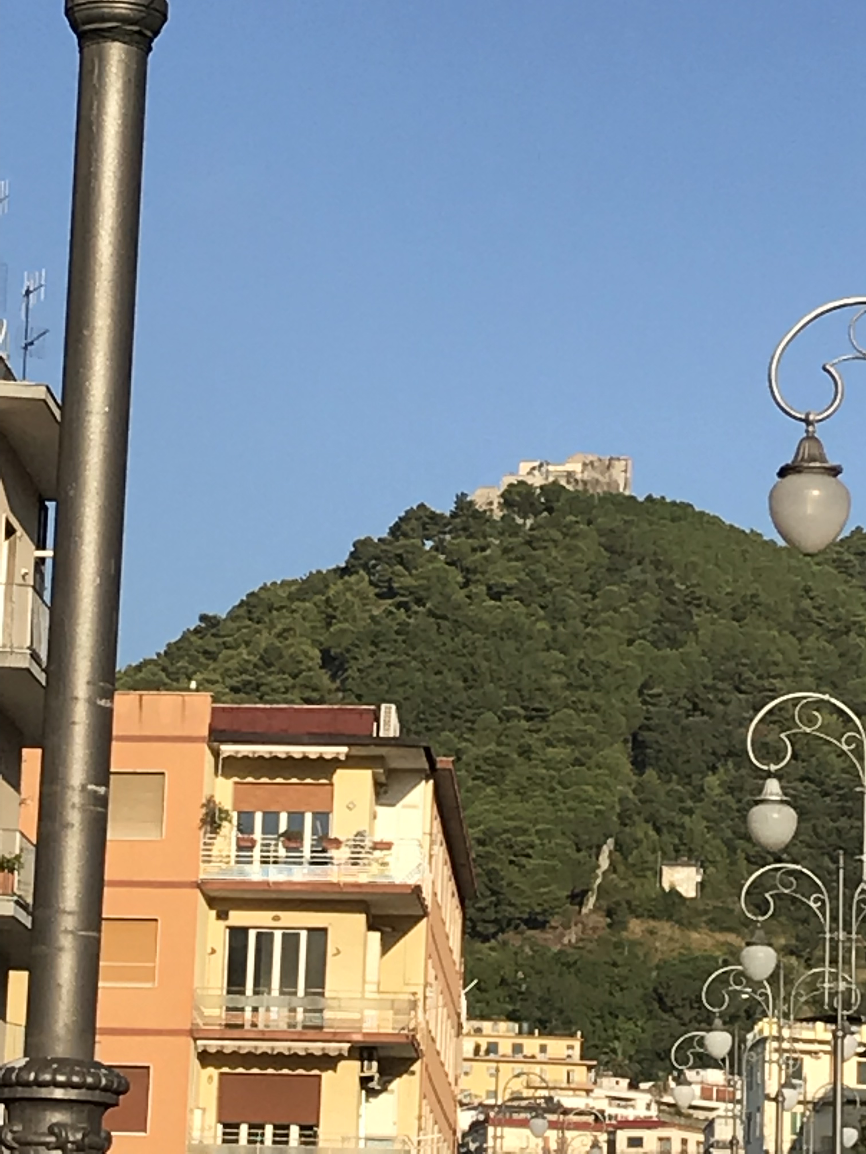 When I left my B&B in Salerno this morning to head to the station I happened to have a closer look at the hill overlooking the town and noticed a castle ruin on it.
