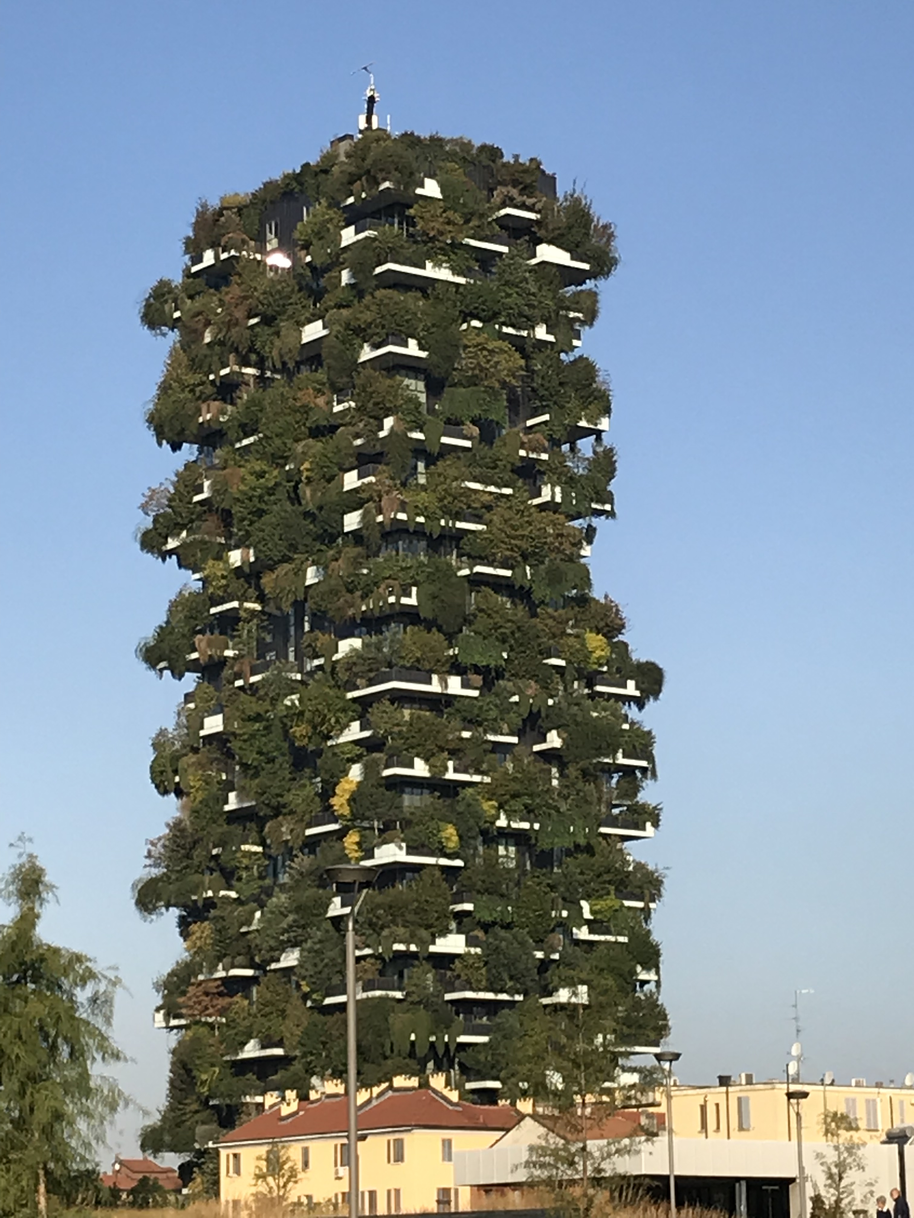 Not far from my hotel in Milan is an area filled with well designed new skyscrapers. This 25 storey building has been designed as an urban vertical forest, covered in shrubs and bushes equal to what would cover an entire hectare of land.