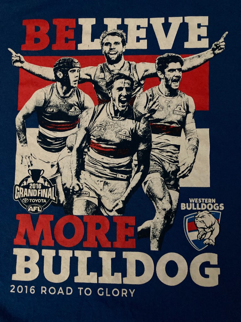 I won’t have a chance to top up my fan gear with late additions to give me further options as to what to wear to the Grand Final. Nor will I be wearing my scarf to work for the section’s Grand Final afternoon tea, where I can proudly stand with the other (and there are surprisingly many of us) Bulldogs supporters.