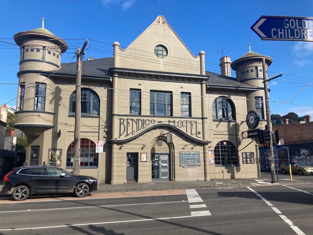 I was walking through Collingwood and Clifton Hill yesterday (as I did not grow up or ever live around there, I am not too sure where one stops and the other starts) and paused to admire the Bendigo Hotel in Johnston Street.