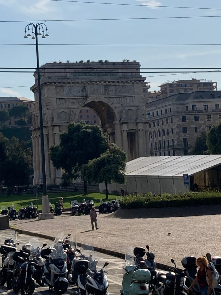 When I was in Genoa during my recent trip to Italy, I found myself highly disturbed by a particular public square, in which there stands a war memorial dedicated to all the Italian soldiers lost during the First World War. This square is surrounded by buildings, which, from their architectural style, were clearly built during the Fascist era.